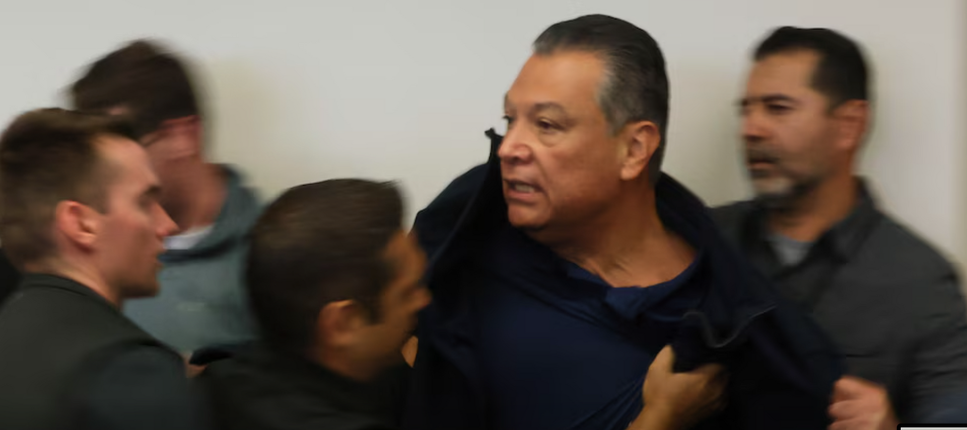 There is no audible evidence of repeated asks or warnings from officers for Padilla to back away in videos reviewed by The Post. As officers tried to move him out of the room, Padilla identified himself, saying, “I am Senator Alex Padilla” — eight seconds after first attempting to interrupt Noem.